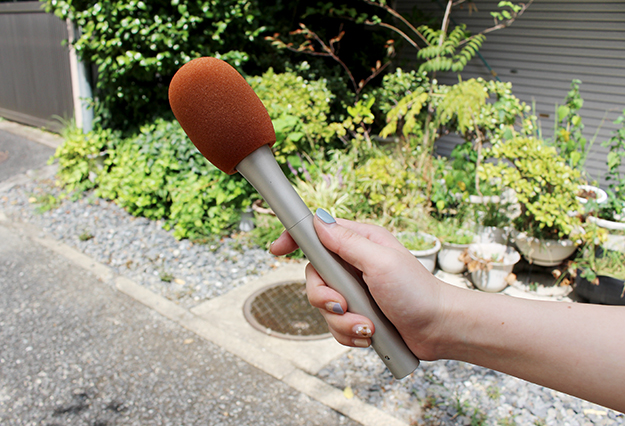 インタビューマイクは、手で持って使ってもハンドリングノイズがほとんど出ない。しかし、それでもマイクの集音部に近い部分では音が入る。そこで、インタビューマイクを使う場合は持ち方が重要になる。マイクのコネクター部分に近い辺りを握るのだ。ただし、コネクターを握ってしまうと、コネクターの損傷やコネクターが動いた時の電気ノイズが出ることがあるので、コネクターに触ってはいけない。