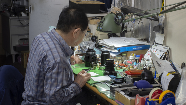 レンズのメンテナンスで活躍中のベテラン職人さん
