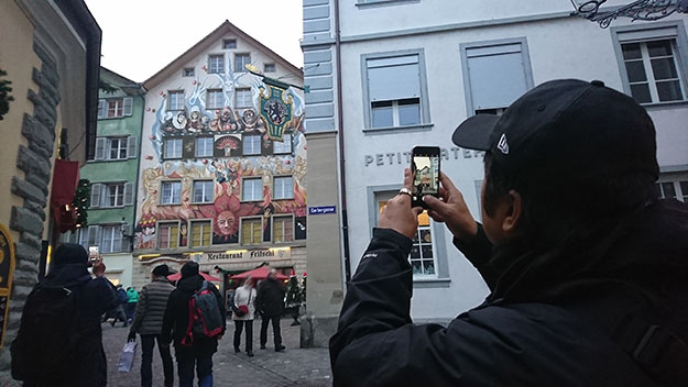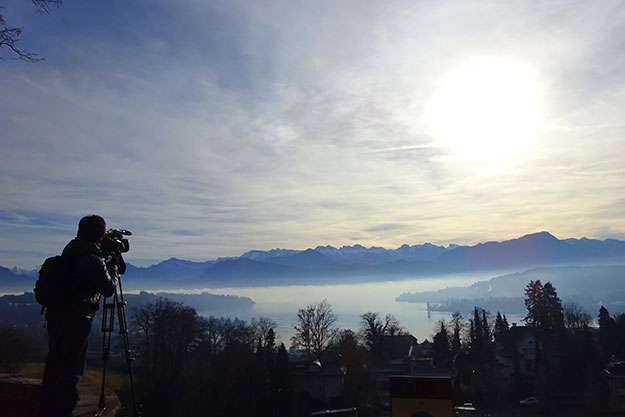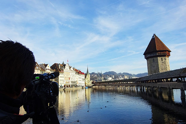 ルツェルン初日はロケハン。ネタ候補を下見するディレクター(2016年撮影)