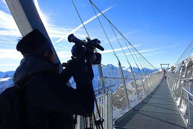 翌日からは、ちゃんとロケ。ルツェルンの街では、有名なチョコレート工場やスイスの伝統楽器のアルペンホルン職人の工房を取材。他にもホテルやレストラン紹介などの観光情報も撮影した。