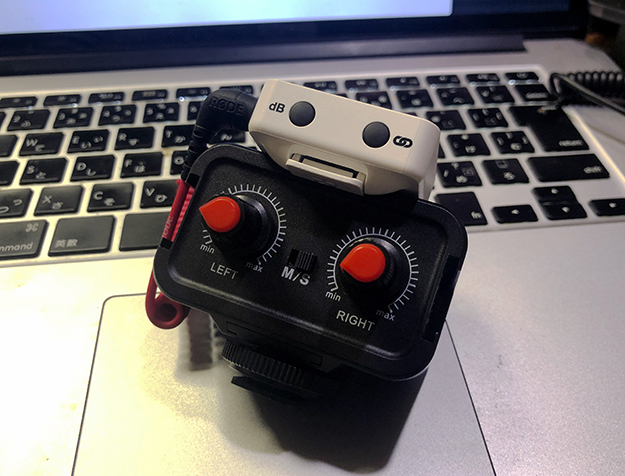 そこで出力の低いSM63の音が十分に調整できるようにカメラ側のボリュームを上げておいて、パッシブミキサーでちょうど良い音量に下げて使うのだ。実際にはカメラによって特性が異なるので、やってみてちょうど良いレベルを見つけて欲しい。