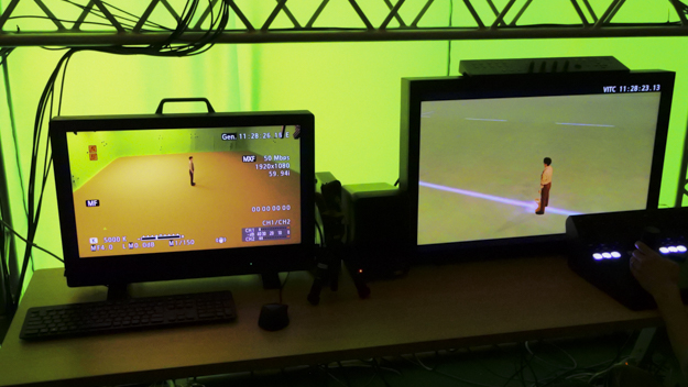 それら二つの要因が実際の映像を使っているにも関わらずコンピューターグラフィックス感が否めない理由かもしれない。近い将来、それを解決するのは解像度だろう。実際、川崎のスタジオだと8×8mと、スタジアムに比べると狭いキャプチャ範囲に設定しているのでデモ映像を見ても分かる通り、W杯の時に比べてずっと解像感は増している。ただ、今のところはウエストショットよりも寄っていくとアラが見えてくるのでフェードアウトさせるような設定になっている。今後、センサーは変えずともレンズの画角などで寄りの解像度を確保する方法も探っているようだ。
