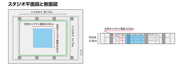 スタジオの平面図と側面図(キヤノンVolumetric Video Studio Webサイトより)