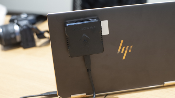 プログレードのカードリーダーはマグネットを搭載し、ノートパソコンの天板に装着可能。世界中のプロからリクエストされて、実現できた製品だという