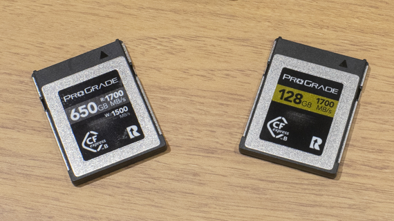 左がProGrade Digital CFexpress Type B COBALTカード。右がProGrade Digital CFexpress Type B GOLDカード