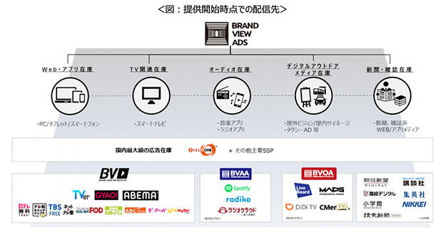 次世代の広告配信の事例としてわかりやすいのは、博報堂DYメディアパートナーズのBRAND VIEW ADSである。その仕組みと配信先がこちらである。