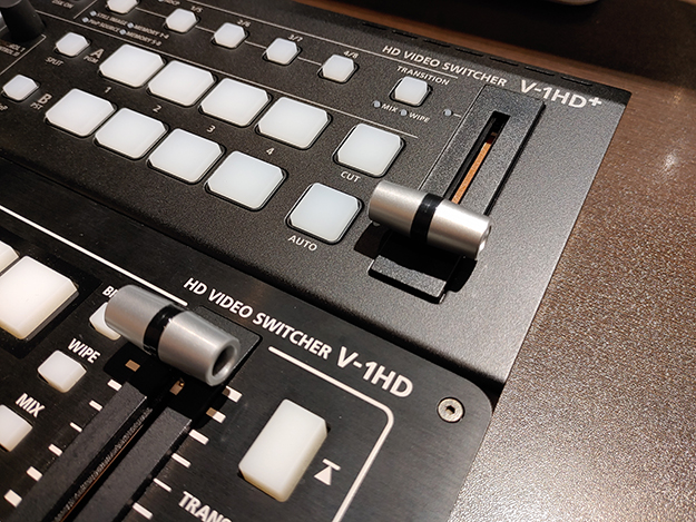 ライブ配信の現場では咄嗟にボタンを押したりつまみを回す必要があることが多く、パッと手を伸ばして操作をするときに起きがちな躊躇や戸惑いがV-1HDのときに比べると格段に少なくなりました。