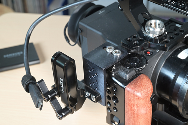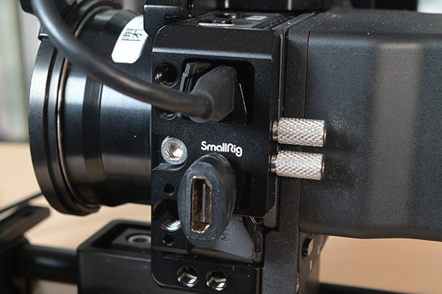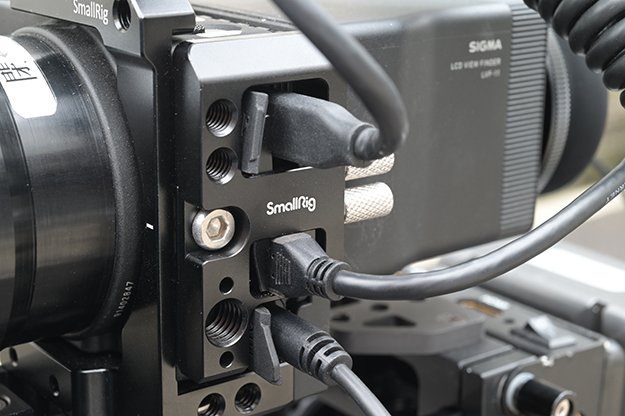 同時に、SmallRigの部品「SIGMA fp専用ケーブルクランプ付きプレート」を購入して、収録中にコードが抜けるトラブルを防止。