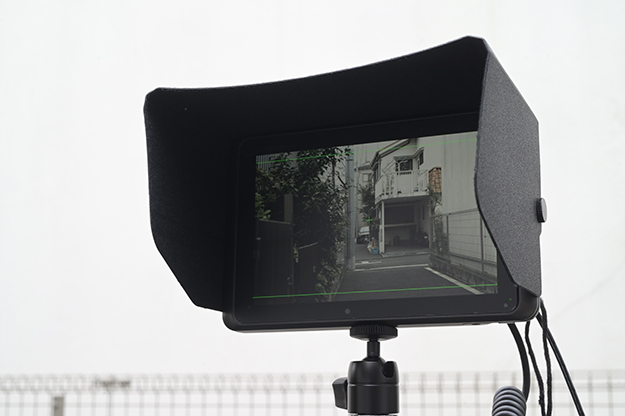 エーディテクノのHDMI入出力端子を各1系統ずつ搭載した7インチモニター75HB。フード装着、ノングレア保護フィルムを貼り付け