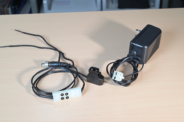 (04)エーディテクノ用、ACアダプターのコードを利用して、モニターの電源をバッテリーアダプターまたはバッテリーのD-tapから供給できるようにした。