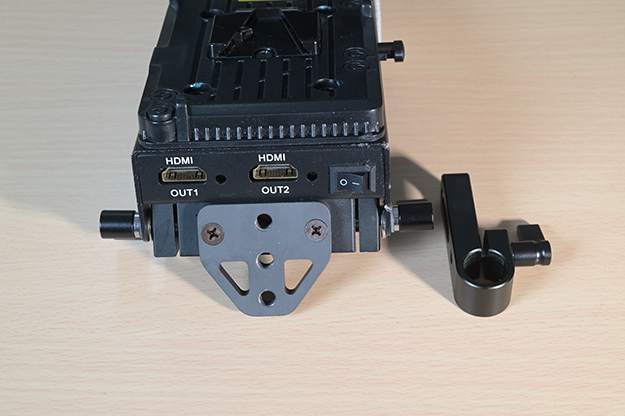バッテリーを横向きに取り付け。大型Vマウントバッテリーはバランスが悪い
