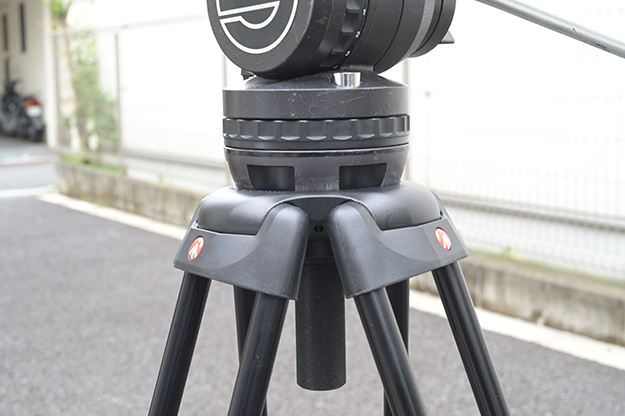 (07)Vinten Vision 10三脚にSachtler3+3ヘッドを載せて使っていたが、老朽化のため三脚の伸縮を固定する部品にヒビが入り、マンフロット100Φ三脚に代替え。fp+PLレンズの組み合わせに、バランスの良い大きさと重さになった。