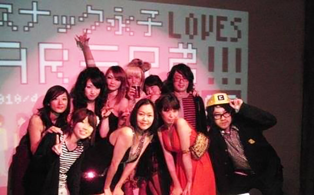 そして、ダンスとは趣向が異なる回で、最も強烈な印象が残っているのは、Vol.33(2010年)「スナック永子 VS ボーカロイド」回。いつも素敵なドレス姿を披露してくれている我らがガールズが、初音ミクと巡音ルカの完コスでお客様をお出迎えする中、まずは人気ボカロPのキャプテンミライと音楽ライター四本淑三による「ボカロ映像セレクション」のスクリーニングを開催。ボーカロイドを知らない方々にも分かりやすいように、楽しめる作品をご紹介いただいた。