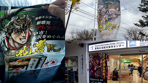 今回、山形県米沢市を漫画「花の慶次~雲のかなたに~」のキャラクター前田慶次と米沢市おしょうしな観光大使の角田信朗さんがナビゲートし、前田慶次ゆかりの場所や直江兼続、上杉謙信、上杉景勝、伊達政宗など米沢に関係する武将が映像や声優による音声で登場する。利用者は貸し出された端末をもって市内の複数の場所を巡っていく。