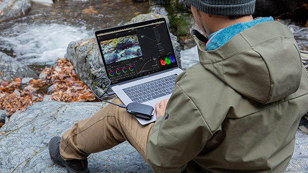 USB 3.1 Gen2のスピードで、CFexpressカードType Bの性能に最適化され、ロケから編集作業までスムーズな、効率の高いワークフローを実現する。0.5mのUSB-Cケーブルが付属