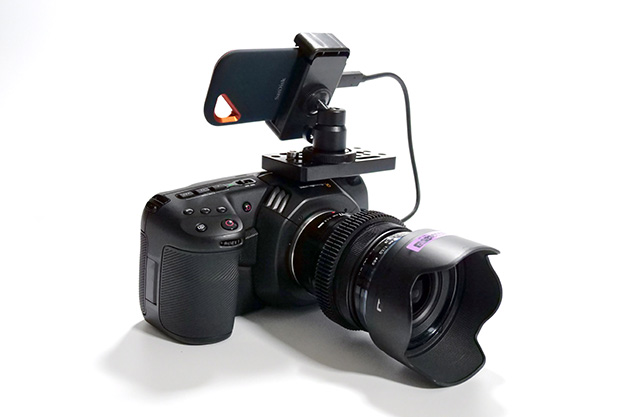 まずBMPCC4KへのSSDへの設置は、汎用のスマホホルダーを利用した。スマホ撮影用途のホルダーであれば1/4インチネジが切ってあるものが多いので、それを活用し自由雲台を併用してカメラの上に固定した。あとは、付属のUSB Type-Cケーブルを使ってサンディスク エクストリーム プロ ポータブルSSDとBMPCC4Kを接続するだけである。