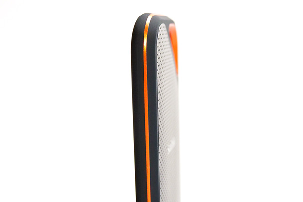 筐体にはアルミニウムを採用することで放熱性を高め、またIP55の防滴性と防塵性をもつ。最大2メートルの落下耐性を備え衝撃と振動に強い高耐久モデルとなっている。サイズは約110mm×57mm×10mmとコンパクトで重量も約77gと軽量だ。