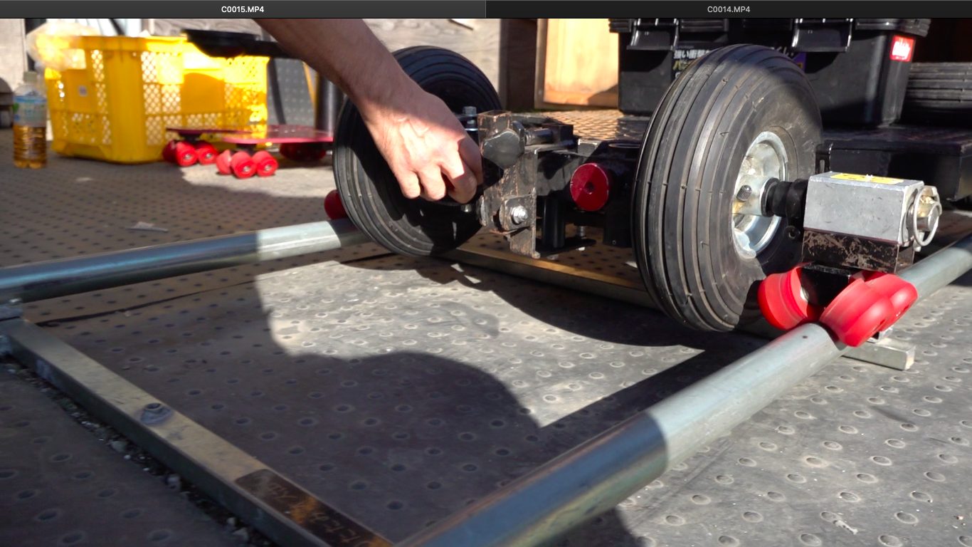 その後、アルバイトをしながら、東京映像芸術学院の同期だちと空き時間に自習を行う機会がありました。ホームセンターで売っている安いパイプにドアを開け閉めする滑車みたいなのをつけて、特機を作りました。知識もまったくない中で、最初は簡単なレール上で移動車が動くものでした。しかもパイプはタオルハンガー程度のもので、とても弱かったです。一回の撮影でパイプは潰れてしまい、ワンテイクしか撮れないようなものでした。