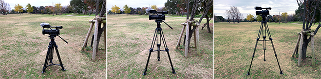 この脚の大きな特徴はワンレバーアクションであることが前提だが、何よりもその丈夫さが目についた。ENGでショルダーカメラを担いでいる方、特にTV取材系のカメラマンが三脚に求めることは軽量よりも壊れない頑丈さではないだろうか?筆者はまさにそのタイプで、FTシリーズは確かに軽量だが、カーボンの厚さと面構成の部分が気になってしまう。