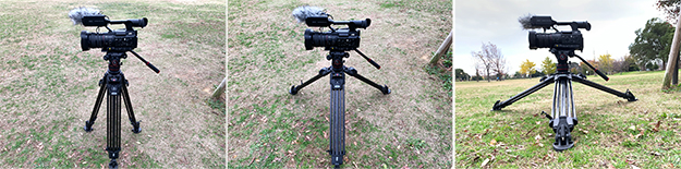 また、645にはミッドスプレッダーが装備されている。ミッドスプレッダーは接地面が段差でも斜めでも安定してセッティングできるという面もある。脚の先端の広さが変わるためにとっさの高さ調整にはややコツが必要となるが、オプションの2in1スプレッダー(グランドスプレッダ―)を使えばその煩わしさから解放されるのはENG系の脚を使っている方なら良くわかるはずだ。