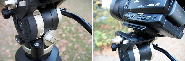 フィーリング的には新品という事もあり非常に感触は良い。動くべき所で動き、停まるべき所で静止し、カウンターバランスは前モデルからの窒素封入ピストン、その動きも癖がなく滑らかだ。N12と比べるとペイロードのMAX値は変わらない感じだが、最小荷重値がN12より若干軽くなったように思える。つまりHXR-NX5RやGY-HM660サイズのハンドヘルドでもバランスが取れるようになった。この振り幅はなかなか便利だ(612のプレートは608とは違いロングプレートが標準装備になっている)。