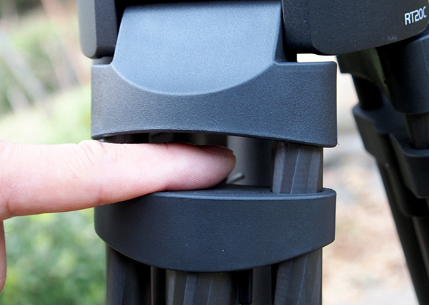 FASTシリーズなので脚の伸縮はワンアクションでできるが、645やFTのようなレバーアクションではなく脚の中間部分を捻る事でロックとアンロックができる。この辺の機構は写真用の三脚と同じような感覚だろう。レバーよりもその動作部分が大きい(長い)ため、645よりは伸縮しやすい。