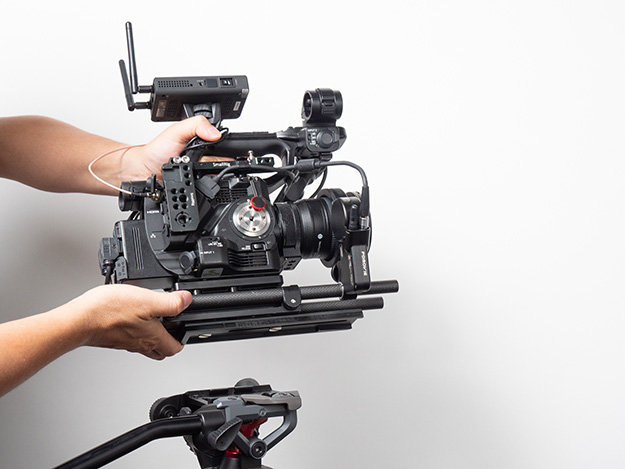 三脚、スライダー、ステディカムと目紛しく機材を入れ替えながらの撮影では、このセットアップの利便性が高く、一度使えば定番セットアップになるだろう。