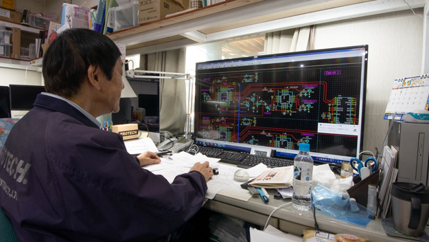 社員は最初私1人でしたが、1人が2人になり、2人が3人になる感じで次第に増えていきました。当時、「うちに来ても給料は払えない」と言っても勤めている会社を辞めてきてくれた設計の人がいました。今では元の会社よりも払えていますが、最初は1/3~1/4ですよ。それでも「そのうち稼げるようになるから大丈夫だよ」と言って当社に来ていただきました。今でも先端の商品を一緒に開発しています。当社は定年がありませんので、起業当時に入社された方は高齢で辞められる方以外は全員現役です。