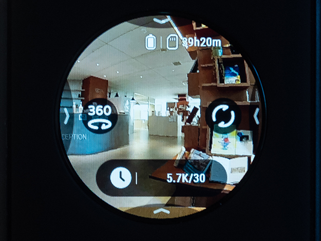 外観でまず目につくのは、2年前に発売された前機種のONE Xより40%程大きくなったタッチスクリーンである。進化した点は、シーンをリアルタイムに、カラーでプレビュー表示できるようになったこと。360°の全方位をスワイプして、インタラクティブに映し出せ、その上に撮影情報がオーバーレイ表示される。撮影やレンズのモード、フロントとリアのレンズの切り替えほか各種設定も、直接スクリーンにタッチして行うことができる。
