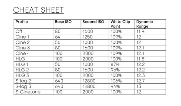 これはロンドンの映像制作プロダクションwrkshp studioが公開したチャートシートですが、自分がPPなし、S-Log2、S-Log3ぐらいで試した感じでは、概ねこの表のとおりのような気がします。第1感度から第2感度まで全て統一して3+1/3ストップの開きがあるのでデュアルISO的な考え方が分かりやすいのですが、これだけ複雑な構造だと誤解も生まれやすいのが難しいところです。