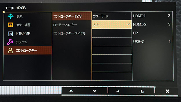 3つのファンクションキーにはカラーモードか入力の切り替えをアサインできる。今回は色合わせで入力の切り替えを頻繁に行うときにとても便利だった。