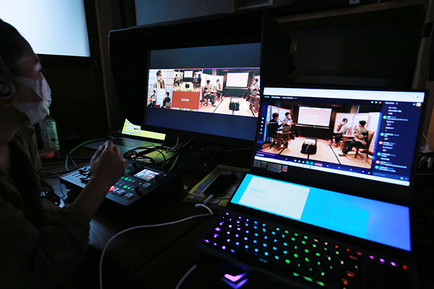 今回、私と大阪の仕事仲間で開催しているセミナー・ワークショップ「動画クリエーティブ寺子屋オンライン」の配信でSW271Cを使用してみた。いつもは会場にお客さんを招いて開催しているが、コロナ禍によりライブ配信での開催となった。参加費を安くして多くの方に視聴して欲しかったので機材費を抑えるため機材は自分たちが所有する機材を持ち寄って配信に挑んだ。
