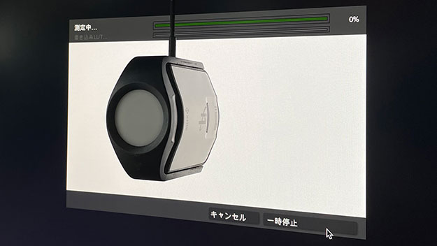 MacBook ProをUSB-CでつなぎX-rite i1Display ProをモニターのUSBに接続し、無料で配布されている校正ソフトPalette Master Elementを立ち上げてキャリブレーションする。約5分ぐらいでキャリブレーション完了。私が持っているモニターのキャリブレーションよりもずいぶん早かった。準備に忙しい現場ではありがたい。