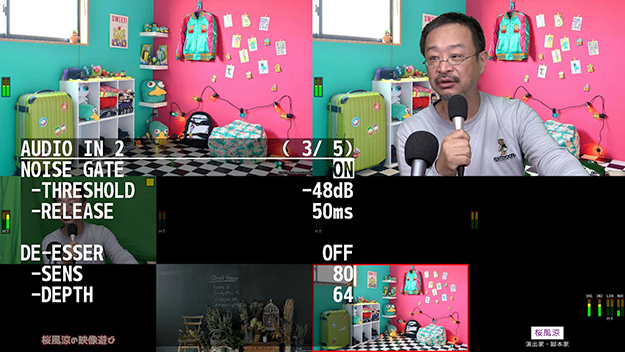 ライブ配信の場合、持っている機器の音質調整を完璧に行わなければならない。音質調整の方法は2種類あって、スイッチャーかミキサーの音質調整機能で最適化するケースと、OBS(パソコン用の多機能配信アプリ)などを介してパソコンで音質を整える方法がある。後者は非常に柔軟性がある一方で、パソコンのパワーに依存してしまう。配信と音質調整(必要なら画質調整や合成)まで同時に行わせると、配信が途中で止まってしまうなど、デメリットもある。