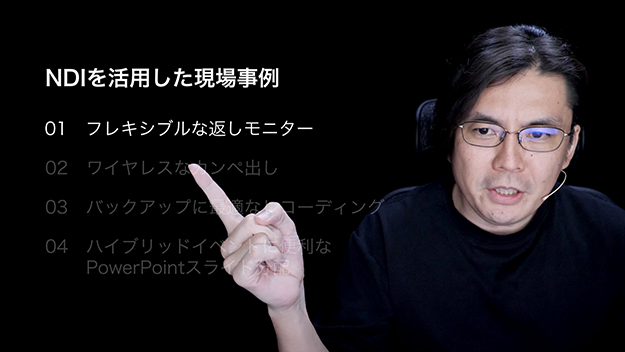 さて、今回は「NDIを用いた次世代のライブ配信システム」をテーマにお届けしました。NDIは、これまでのHDMIやSDIの代替技術として捉える方も多くいらっしゃいますが、その魅力は「NDIならではの活用」によって引き出されると私は捉えています。
