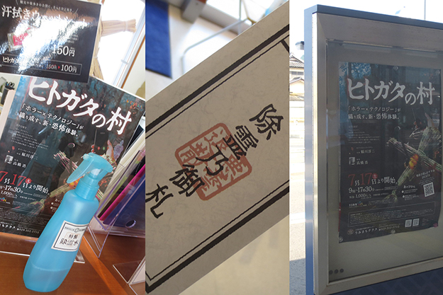「うみまちテラス」スタッフの方々が「ヒトガタの村」ポスターやチラシ作成に加えて紹介動画をYoTubeにアップしたとのこと。その甲斐あってか、夏休み期間はにぎわっていたそうだ。今回の体験は制作時に意図したことを客が感じられるようになっているか、専用端末で映像がどのように表示されるかを確認することが大きかったのだが、大洗では専用端末等を貸し借りする場所からすでにホラーの世界観をつくりだしており、それによってこれから体験するアトラクションも大いに期待が持てたのはとても大事なことだと感じた。