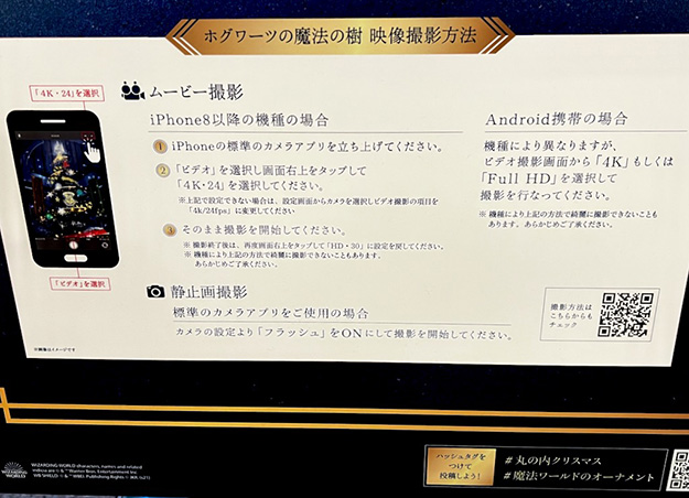 場所は東京丸の内の丸ビルである。丸ビルでは12月25日まで「MARUNOUCHI BRIGHT CHRISTMAS 2021」と題して、1Fロビーのマルキューブでハリーポッターとのコラボレーションによる「Tree of Hogwarts Magic― ホグワーツの魔法の樹 ―」を開催している。