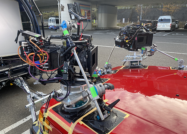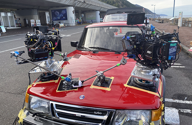 現場に入る前にカメラテストをして、ライトに入れるフィルターを選択し、キーライトと押えのライトのバランスなどを確認し、現場運用のためのLUTを作りました。そしてクルマ周りのカメラポジションも探り、ここから撮れるねっていうのを照明部と一緒に確認しました。このタイミングで監督もカメラポジションやレンズの違いによるサイズ感を把握しますので、車内の芝居に関して、監督はどこでどう撮れるかっていうのはおそらく見えていたと思います。コミュニケーションはスムーズにとれたと思います。