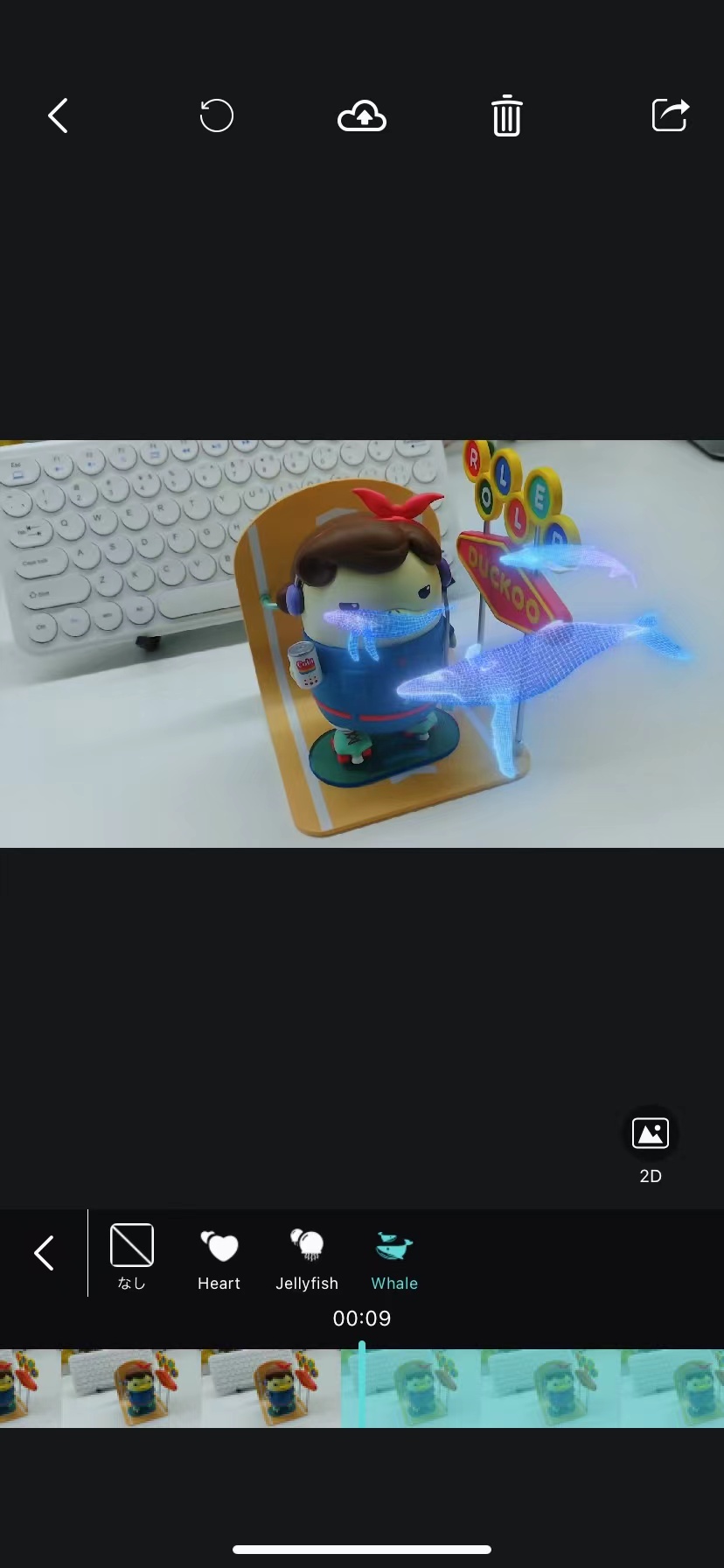 背面のタッチパネルでは、カメラコントロールや設定、再生をおこなえる。専用のQooCamアプリからは、カメラコントロールの他、簡易的な編集をおこなうことができる(原稿執筆時点では、編集はiOS版のみ対応)。