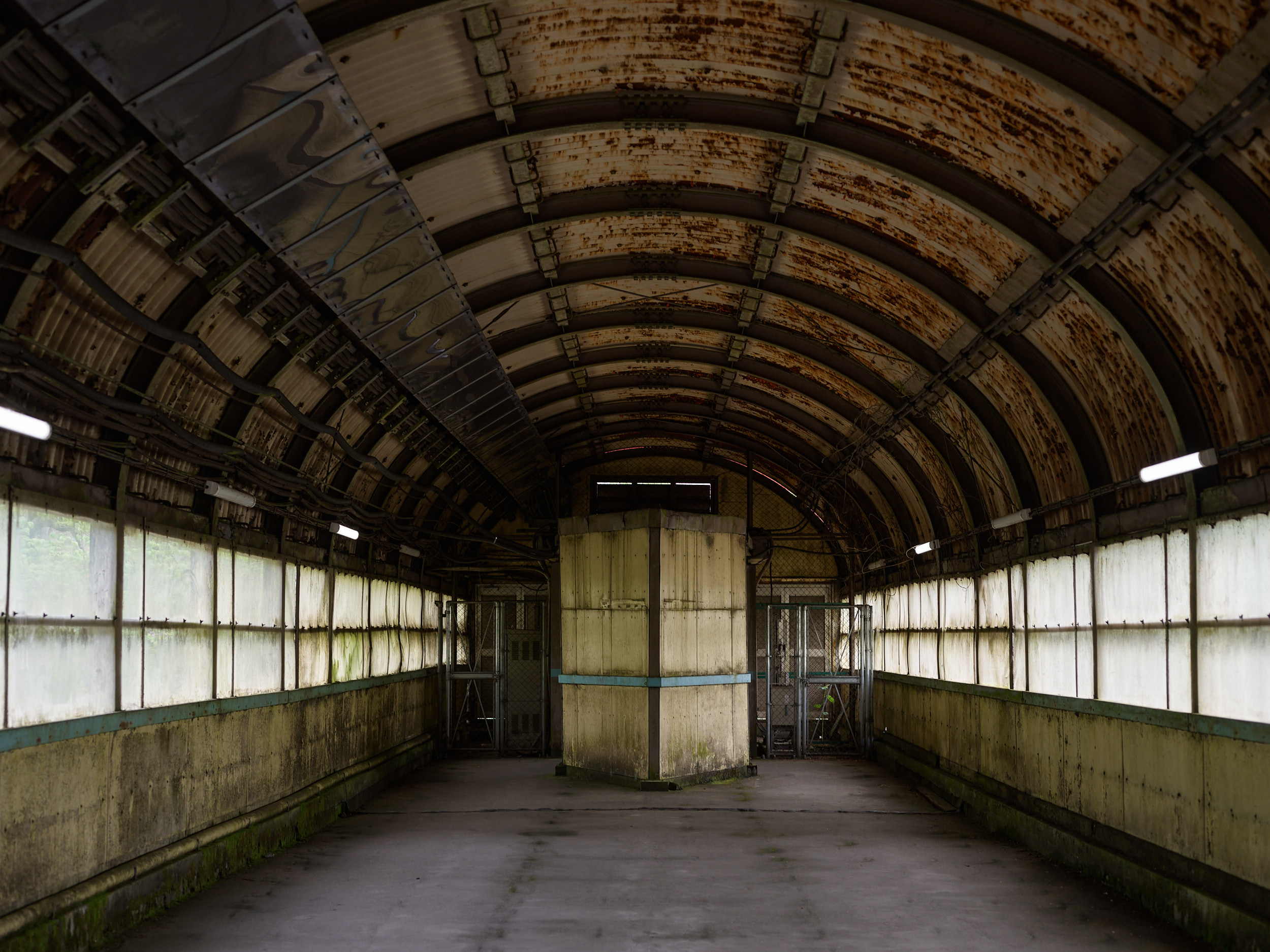 この位置から上を見上げて唸る(写真下)。降りるのは良いが、降りたらこの何倍もの階段を登らなくてはならないのである。下のホームを見てみたい気持ちもあったが、運転疲れもありここで退散することにした。