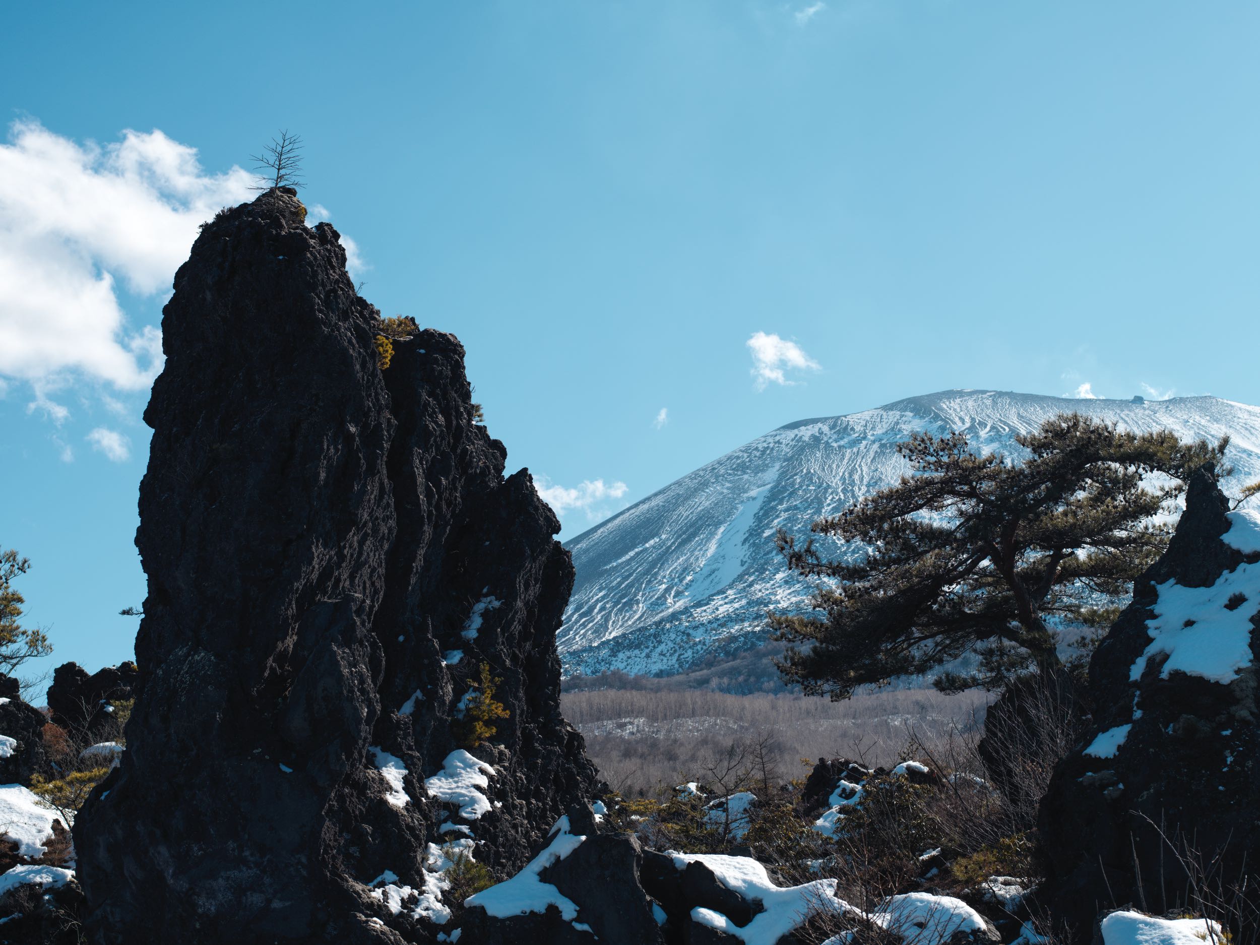 着いたのは「鬼押出し園」という国立公園内の施設で、ご覧のようにゴツゴツした岩がそこらじゅう形成され歪な光景を作っている。3ヶ月間つづいた「天明の大噴火」により粘度の高いマグマが火口から噴出し、次から次へと押し出されていくことで形成されたそうだ。「浅間山には鬼が住んでいる」という言われがあるのも納得できる。