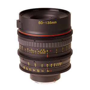 50-135mmT3は、スーパー35mmサイズのセンサーに対応したシネマ用望遠ズームレンズ。フォーカス、ズーム、絞りにギヤを装備。ED(特殊低分散)ガラスのレンズを3枚使用しており、色収差を除去。レンズの内面反射を除去し、ゴーストの発生を抑えるコーティングを採用している。