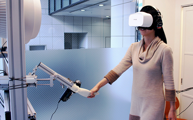 同コンテンツは、VR Dream Match Baseballに続き、同社が手がけるVRコンテンツ第2弾で、世界や日本の各地を、案内役の人物に手を引かれながら散策する体験が可能。360°実写映像と立体音響による臨場感、体験者が実際に行う「歩く」動作、触ることができる「手」、風やミストの「体感」がシンクロすることにより没入感を実現。試作版では、関東地方のとある場所を女性に案内され、散策する。