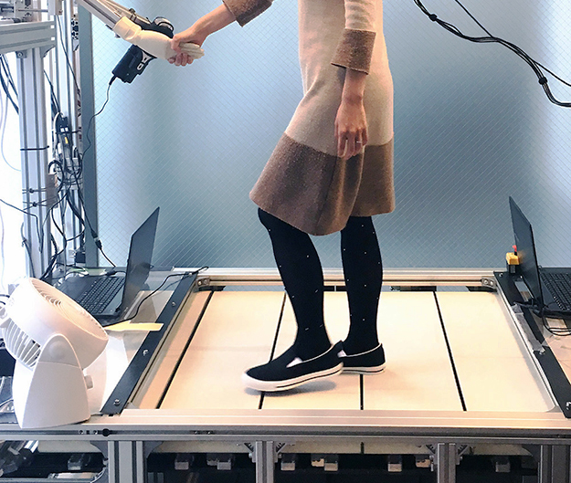 ベルトコンベアを複数並べることで縦、横、斜めなど全方向の動きを再現できる歩行装置