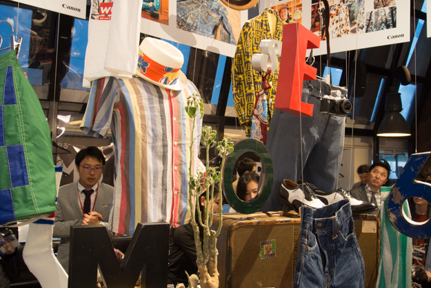カフェの中央のタッチ&トライコーナーには装飾が被写体として用意されている。こちらのプロデュースはスタイリストの原田氏が手がけたもの