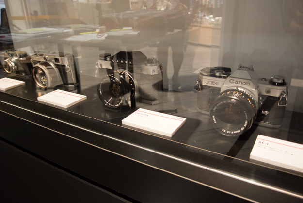 店頭には「歴代のクラシカルカメラ」というキヤノンのデザイン的なマイルストーンとなる機種の展示コーナーが設けられていた