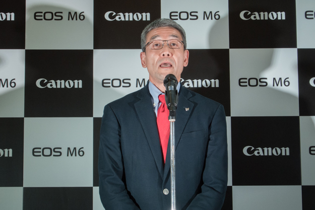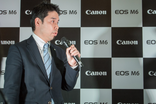 EOS M6の説明を行うキヤノン株式会社 カメラマーケティング部 国井智和氏