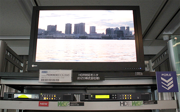 12G-SDIを搭載した4K対応信号発生器「ESG-4100」(左)と、8K/4K解像度での色域変換/ダイナミックレンジ変換に対応したリニアマトリクスコンバータ「LMCC-8000」(右)。会場では日本初展示となるEIZO社のHDR映像制作用の31.1型リファレンスモニター「ColorEdge PROMINENCE CG3145」とともに展示
