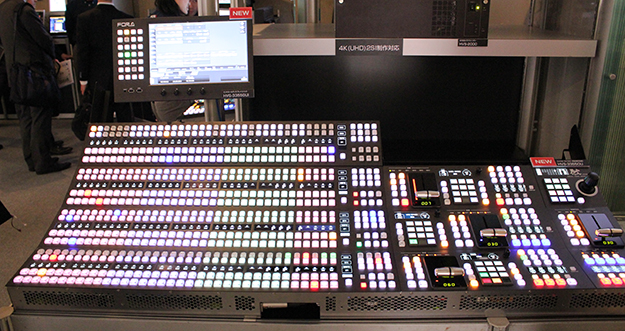 拡張性にすぐれた4K対応ビデオスイッチャ「HVS-2000」。今後12G-SDI対応の3M/E、48入力、36出力、4KEYER/MEのビデオスイッチャ「HVS-6000(仮)」も登場予定