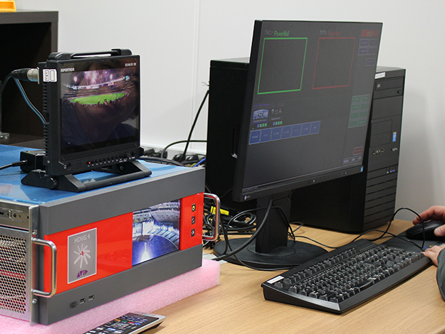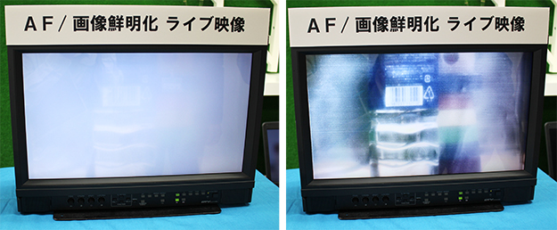 AF/画像鮮明化ユニット「Mimic-AFC/HD」のデモ。HBC-3600でリアルタイムに撮影し、鮮明化前と鮮明化後の比較を行った